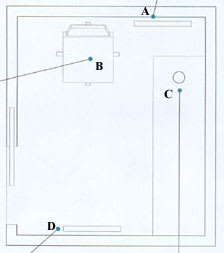 | B | This layout allows a 13-foot chart distance using mirrors |