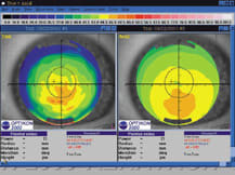 Corneal topography has already successfully incorporated RGP fitting nomograms into the software packages for quantitative contact lens parameter selection. Someday, we'll also have sophisticated software packages that will troubleshoot soft toric lens fitting. For now, you can retrieve some of the most important fitting information for soft toric lenses by viewing the standard map displays.