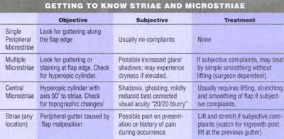 When patients do present with visually significant microstriae, early treatment is essential. The longer a stria is present within the collagen, the harder it is to remove by stretching the flap. Surgical treatment of striae may be as non-invasive as to "squeegee" it from the center of the flap to the periphery.