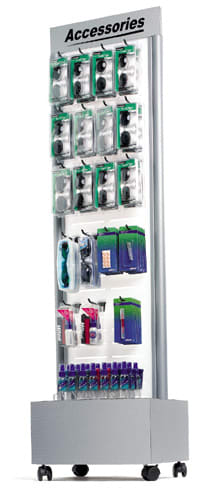 Hilco presents new floor and countertop displays that combine contemporary style with organized presentation. Both the compact, rotating counter display and the two-sided floor display feature consistent packaging graphics and attractive metal and frosted glass construction. Purchase them empty so you can present your own choice of products, or fully stocked with a preselected assortment of Hilco's best-selling new merchandise.