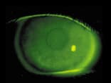 Soft lens patients may display diffuse corneal staining that typically begins in the inferior region of the cornea, then works its way around the periphery, with the central cornea typically being the last region affected (Fig. 1). In GP solution sensitivity reactions, the corneal staining is often confined to the area underneath the lens, especially if the lens is fitted with apical clearance.