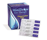 According to manufacturer Optics Laboratory, MiniDrops are for relief of mild to moderate dry eye. Optics Labs has formulated the drops for use with or without contact lenses. MiniDrops are preservative-free and available in a five-dropper purse pack and a 30-dropper household pack.