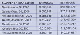 For even more detailed VSP financials, go to http://wpso.dmhc.ca.gov/fe/search.asp. Scroll down and you'll see "HMO or Healthplan." Next, select Vision Service Plan and then click "submit." You'll be presented with seven recent financial reports. For fiscal year 2002, VSP California reported net income of $83.0 million, and cash-on-deposit of $66.8 million. Looking at numbers such as these while facing profitability squeezes such as new frame and contact lens mark-up rules makes O.D.s ask what's going on with optometry's "friend."