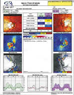 In addition to the abnormal NFI, many of the temporal, superior, nasal, inferior, temporal (TSNIT) parameters were abnormal as shown by the color-coded probability symbols (see Figure on page 24 and below). The deviation map revealed focal areas of RNFL reduction, also depicted by color-coded probability symbols.