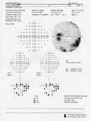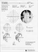 The 8:00 a.m. IOPs the next morning were 23 mmHg OU. The visual field tests revealed loss within the central 30 degrees in each eye and the loss corresponded to the field defects found with the 30-60 field test.