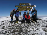 The hike to the top was slow and laborious -- each climber concentrated on breathing and simply putting one foot in front of the other. After 7.5+ hours we reached the summit -- and what a view it was! We patted each other on the back, took some photos and, after a few minutes, began working our way back down. Seven out of the 10 who began made it to the summit. After 12 to 13 hours of round trip hiking we found ourselves back at Kibo and proud of our accomplishment. We spent the next two days hurrying down the mountain in anticipation of the warm showers that awaited us.