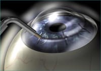 The Implantable Contact Lens is a foldable plate haptic lens made of collamer. A 3 mm clear cornea incision is formed, the lens injected and carefully placed behind the iris and in front of the natural crystalline lens. The surgeon must be careful not to come into contact with the natural lens.