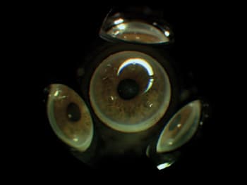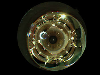 The four-mirror lens design has many advantages over the single and three-mirror versions. Because it doesn't need to be rotated on the eye, the procedure takes less time and does not require gonioscopic fluid (see image 2). And, four-mirror lenses are preferred in children and in patients with small or tight palpebral fissures because they are smaller.