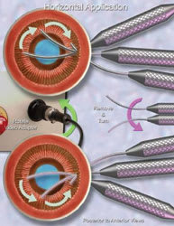 Limbal approach demonstrates the incision placement of a curved endoscope. |