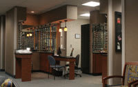 Summit Eye Associate's optical area uses mirrors that make its inventory appear larger. |