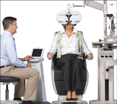 Figure 2. Performing a refraction with an electronic phoropter allows the practitioner to sit more comfortably during the procedure.