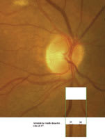 be aware of the various ocular manifestations that can signal these conditions. For example, the identification of intraocular flame-shaped hemorrhages is often a sign of high blood pressure. In addition, dot-and-blot hemorrhages, seen via direct ophthalmoscope, are usually characteristic of diabetes.3,4 More recently, researchers have linked changes in retinal blood vessels with arteriolar-sclerosis, diabetes, increased likelihood of heart disease and even increased probability of developing glaucoma.1-5 Indeed, arteriolar narrowing observed in the area of the retina just beside the optic nerve head has been correlated with similar narrowing of the arterioles of the cardiac muscle and hence, with increased incidence of heart attack.2 While this so-called "SAHARA" phenomenon has been widely recognized within the ophthalmic community, it has only recently been experimentally documented and verified.2 People who have smaller arteriolar diameters are more likely to experience myocardial infarctions as well as stroke and even migraine.2 De-creased arteriolar diameter also predisposes patients toward the development of age-related macular degeneration, presumably via impairment of retinal perfusion.6,7 Carbon Monoxide (CO) poisoning and systemic inflammatory diseases, such as diabetes, cause retinal venules to dilate so that you may be able to initiate or complement a medical diagnosis based on a simple, quick and noninvasive procedure (ophthalmoscopic observation and subjective impression constitute the standard methodology).8 Further, when the venule caliber expands just beside the optic nerve head, researchers have observed that blood also contains certain chemicals correlated with inflammation and hence increased risk of sequelae of those inflammatory entities.9 Researchers have associated deviations of posterior pole arterioles and venules from "normal" calibers with several systematic disease entities. For example, narrowing of the arteriolar lumen diameter can result from high blood pressure as well as hyperlipidemia, and it has been correlated with progression from ocular hypertension to glaucoma.1 Putatively, smaller arteriolar diameter makes the optic nerve head more susceptible to diurnal variations in the intraocular pressure and so leads to a sequence of biomechanical and chemical events that eventuate in death of neurons in the optic disc.8 |