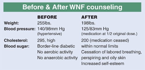 I never prescribe a program without confiding with the individual's primary-care physician and you should do the same. The internist in this case immediately prescribed a complete physical and medication to control Dr. Webb's hypertension and cholesterol with the understanding that as his WNF improved, the internist would decrease or discontinue the medications if possible. After working with Dr. Webb for two years on total WNF and great implementation on his part, he decreased his weight, blood pressure, cholesterol, blood sugar and perspiration. This was not the result of a miracle diet or training requirement, it was a lifestyle change that Dr. Webb could live with and implement.