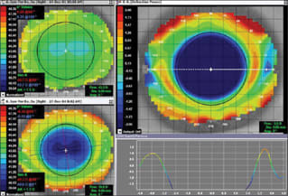 The latest map-interpretation features, in particular, can be very helpful, whether you're fitting or designing contact lenses, diagnosing corneal conditions, such as keratoconus, or comanaging corneal refractive-surgery patients. These new features allow for a thorough evaluation of corneal irregularities as well as the effects of these irregularities on patients' quality of vision.