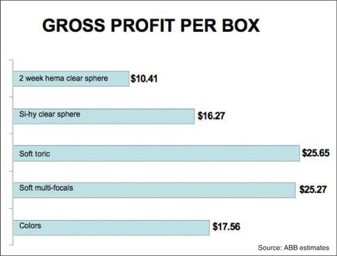 The gross profit that independent ECPs earn from each box of specialty lenses dispensed is substantially higher than that yielded by clear spherical lenses. These profit calculations are based on retail price and cost-of-goods audits ABB CON-CISE continuously conducts among independent ECPs.