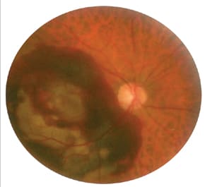 On rare occasion, you may encounter a non-clearing retinal hemorrhage, such as a preretinal or submacular hemorrhage. As this hemorrhage slowly resolves, it releases biochemical components, which may have the propensity for photoreceptor toxicity. This exceptional circumstance may benefit from treatment that helps drain the hemorrhage, such as an anti-vascular endothelial growth factor (VEGF) agent. Most retinal hemorrhages, however, spontaneously reabsorb without any intervention.15 The most suitable management option for retinal hemorrhages depends on the underlying cause. For instance, in the case of a subretinal hemorrhage associated with a CNV lesion, prompt referral to a retinologist is mandatory, so the retinal specialist may initiate prompt and appropriate treatment.