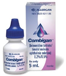 The recent Food and Drug Administration (FDA) approval of a combination glaucoma drop, however, may soon make glaucoma-medication compliance for these patients less of an issue. The drop is called Combigan (brimonidine tartrate/timolol maleate ophthalmic solution 0.2%/0.5%, Allergan). Its combination of an alpha-adrenergic receptor agonist with a beta-adrenic receptor antagonist facilitates a dual mechanism of action to lower IOP by reducing aqueous-humor production and enhancing aqueous-humor drainage or outflow.
