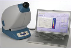 QuantifEye HEIGHT: 12 inches WIDTH: 9 inches LENGTH: 14 inches COST: Please contact ZeaVision for pricing information. QuantifEye utilizes a laptop computer, provided with the device, to present a graphic display of the patient's MPOD, as well as to provide data storage. |