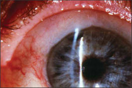 ► Bleb dysesthesia or a symptomatic bleb. This can be problematic for some patients if the bleb is sufficiently elevated to cause surface disruption, such as dellen formation or irregular astigmatism from extension onto the cornea. If your patient presents with this finding, refer him for a bleb revision.