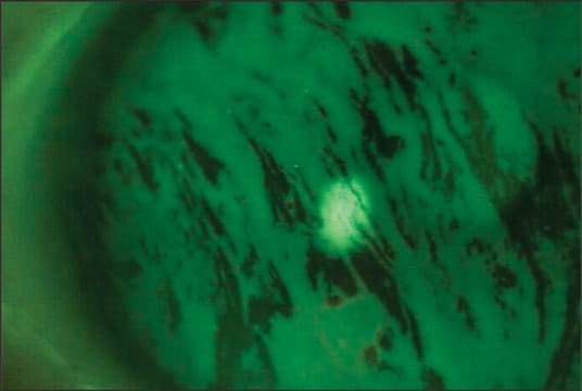 At her last visit, although lissamine green staining was still present in both eyes, the patient said she was far more comfortable. Her IOPs had decreased to 15 mmHg in the left eye and 18 mmHg in the right eye. Visual fields and RNFL scans remained normal. I advised the patient to continue using Travatan Z as prescribed, as well as topical cyclosporine b.i.d. and non-preserved artificial tears as needed.