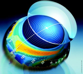 • Orthokeratology lenses. When fitting these designs, corneal topography enables you to monitor the centration and dioptric effect of the treatment zone regardless of the fitting method and lens design (see figure 4).