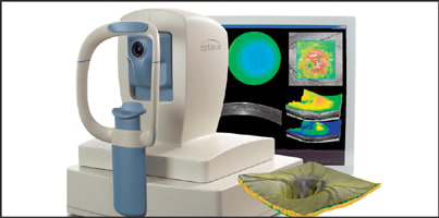 This advance in technology is analogous to the advantage that jet propulsion achieved over propeller-powered aviation in the 1960s. Fourier domain OCT provides 3-D views of all layers of retinal tissue and clearly images landmark features such as the macula, blood vessels and the optic disc. Besides eliminating significant motion distortion, the RTVue also reduces sampling errors, links fundus photograph findings to cross-sections of disease and detects focal pathology that can be missed with time domain OCT images.