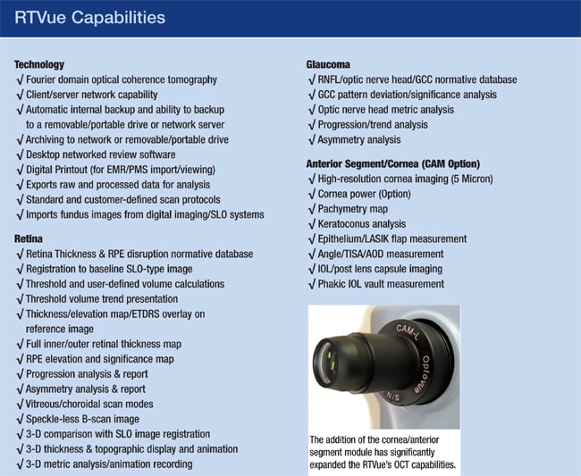 ■ Updated information on new RTVue software that features live image-quality feedback during scanning acquisition to improve image quality, functionality and analysis in 3-D scans