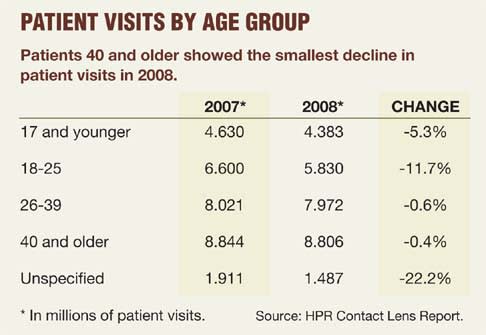 Although patient visits for contact lens (CL) wear declined about 5% in 2008 from 2007, the CL market continued to see areas of growth and an extension of certain trends, revealing its strength in challenging times.