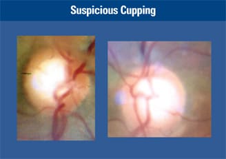Despite my request, she didn't return for the visual field test until 6 months later, when I discovered her IOPs had increased to 20 mmHg OD and 21 mmHg OS (morning measurements). This case predated the release of the Ocular Hypertension Treatment Study (OHTS), which showed that patients with thin central corneal thickness (CCT) and elevated IOPs were at higher risk for developing open-angle glaucoma.2,3 There was no evidence that her IOPs were ever elevated beyond normal levels, but certainly the rise in pressure to a high normal level was disturbing given her very suspicious cupping.