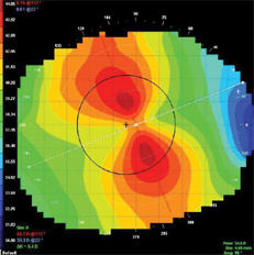 Keep in mind that the type of astigmatism (i.e. regular or irregular) dictates your lens choice. As a result, the ability to evaluate corneal topography maps is an essential starting point. With-the-rule (WTR); against-the-rule (ATR) and oblique are all forms of regular astigmatism. (See figures 1a, b and c, below.) Irregular astigmatism results from keratoconus; pellucid marginal degeneration (PMD); Terrien's marginal degeneration; post-refractive surgery ectasia; post-penetrating keratoplasty; post-corneal trauma; and post-corneal transplant.