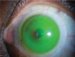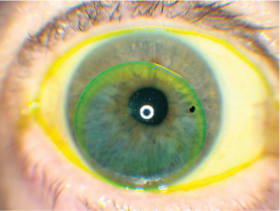 For the fitting, incorporate a well-trained technician who is able to identify proper fitting characteristics. Use a “rapid fire” approach to allow placement of the initial diagnostic contact lens and step-wise adjustments, which are made based on fluorescein staining patterns and lens movement. Often, a short duration is necessary for the diagnostic contact lens to settle.