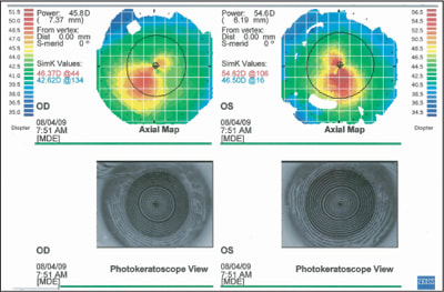 If KC is the initial diagnosis, thoroughly educate the patient about the condition. Include discussion regarding the diagnostic tests used to measure the corneal anatomy, how this varies relative to “normal,” how KC has affected visual function and what changes might occur in the future. Outline treatment options. If you have the opportunity to meet the patient's needs with spectacles or soft (toric) contact lenses, proceed with the routine examination.
