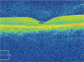 When comparing the two exams, Cirrus HD-OCT revealed a change in retinal thickness associated with a 100-micron decrease (Figure 2).