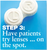 ● Once a patient has agreed to try contact lenses, make sure the lenses are comfortable. This means fitting them in the proper lens from the start, even if it is a specialty lens.
