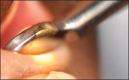 Figure 2: Here, we used a Mastroda paddle to therapeutically express the meibomian glands. Note that although the lid, lashes and lid margins are without inflammation or other pathological signs, the glands aren't expressing any material. This indicates significant obstruction of the glands in the absence of obvious clinical signs, or non-obvious MGD.