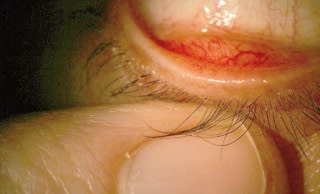 • Look for the signs. Because patients may have a combination of ocular surface problems, the examination helps put a name to their complaints. Check for signs of irritation such as redness and conjunctival edema. Characterize the lids, which also may show redness and edema, as well as debris or other signs of anterior blepharitis. Blocked glands may be visible or appear inflamed when you pull down the lid to carefully examine the gland orifices. Check the appearance of the glands in the upper lid. Ideally, it's a good idea to develop a habit of always checking both lids to ensure a thorough exam is performed on each patient. This helps prevents ocular surface diseases from "slipping through the cracks."