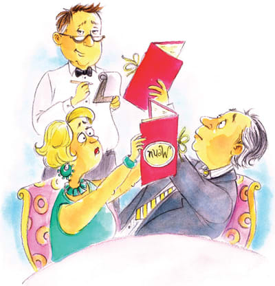 Everyone is holding the menus up for more light, squinting to read them, and comparing notes. You are probably the only one there wearing your glasses. However, it doesn't do you a lick of good, because your glasses are busy traveling around the table to your fellow diners to help them read the menu.