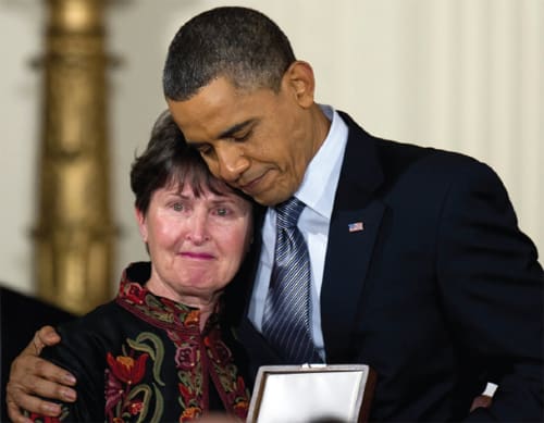 President Obama posthumously awarded the 2010 Presidential Medal of Freedom to optometrist Tom Little, of Delmar, N.Y., on Feb. 15th for his optometric mission work in Afghanistan. His widow, Elizabeth Little (pictured), accepted the medal and a hug from the President at a White House ceremony. (For more information on Dr. Little, visit www.optometric.com/article.aspx?article=104706.)