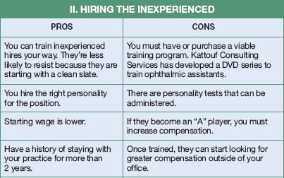 Q As a 20-year private practicing optometrist, I've experienced a “merry-go-round” of employees. Those with prior experience are resistant to adapting and changing to my model and delivery of eyecare. In a busy practice like mine, what's the answer/solution to this situation? How do you train those with no experience?
