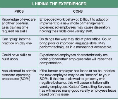 Eyecare professionals usually have no hiring methods. The “seat of the pants” philosophy is rampant. Doctors hire in desperation and it usually leads to a bad choice and overpayment. Better to be shortstaffed for a bit as you conduct a complete review of your needs and a thorough search to identify the right person for the job. OM
