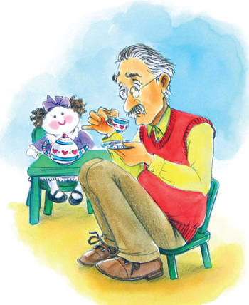 “You've got to see how cute this is,” said Grandpa, as he asked for more tea, and the little girl brought him yet another cup.