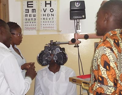 Students and faculty at the optometry school in Kumasi, Ghana with equipment provided by the International Technology Transfer program.