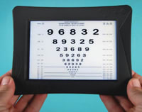 ■ The Illuminated Near Card, from Gulden Ophthalmics, is useful in testing near vision (emulating users' vision with reading materials, computer screens, smart phones, etc.) and ruling out abnormal conditions, such as maculopathy, the company says. The device is indexed with letters from 20/20 to 20/200 in nine increments with clear indices that indicate visual acuity level. The card measures 7.8 x 5.6 x .4″, with a 5.75 x 3.75″ viewing area.