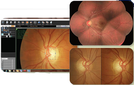 The AFC-330s NAVIS-EX software provides advanced image processing, such as stereo pairing and automatic multi-field montaging, as well as baseline and follow-up measurements of the optic nerve.