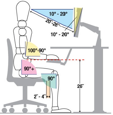 We must become ergonomic, as well as visual, experts with regard to CVS. To correct poor posture, educate the patient that chairs should be comfortably padded and conform to one's body, and that he should adjust his chair height so his feet rest on the floor. If the patient's chair has arms, tell him to adjust them to provide arm support while typing.4 This will prevent shoulder pain. In addition, tell these patients to avoid resting their wrists on their keyboards when typing, as this will preclude carpal tunnel syndrome.4 Finally, instruct patients to place their reference materials above the keyboard, though below their digital display.4 If this isn't possible, suggest they purchase a document holder to place next to their device. The purpose: To prevent constant head movement from the digital display to access their reference materials. Studies have shown that subjects prefer eye movements to head movements when looking at near objects.5