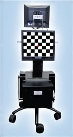 The Diopsys NOVA-VEP Vision Testing System is an in-office device (available in both a fixed protocol [NOVA-LX] multi-contrast stimuli and a user-defined protocol configuration [NOVA-TR]) that employs VEP to objectively measure the complete visual pathway’s (e.g. the anterior segment to the visual cortex) responses. The device’s dimensions: 24” x 24” (approx.) on a base with locking wheels, weight: 120lbs. I believe a smaller and lighter version with a more compact CPU can be created.