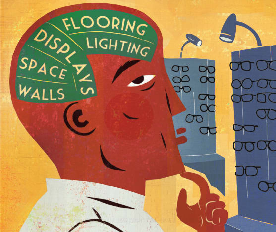 Recently, a young optometrist contacted my optical design company requesting a dispensary remodel on a strip mall practice she’d recently bought. Upon viewing the dispensary, I felt as if I’d travelled back to the 1960s: The lighting was cool white deluxe, the reception area had a rock wall and front, the remaining walls were a cream color, the cabinets and displays were a gold rounded laminate, and the flooring was worn, tan carpeting. Amid this Mad Men-era disaster was her 2012 frame merchandise. This optometrist practiced in an affluent Asian area, where its primarily young residents placed a high premium on current style. Although she carried the right merchandise, her dispensary’s appearance was overshadowing it.
