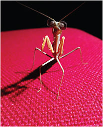 Newcastle University researchers have fit tiny 3D glasses to a praying mantis to determine how its innate 3D vision can be used in both science and industry.