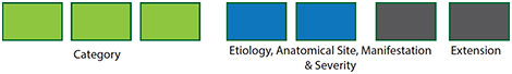 The ICD-10 format starts from left to right with increasing specificity, beginning with the systemic category and drilling down into specific structure detail. This is easy to see in the breakdown of diabetic retinopathy.