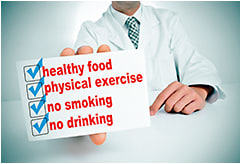 ▶ Proper diet and exercise. A healthy, balanced diet coupled with a fitness regimen can help to minimize a number of risk factors, including obesity, poor diet, high cholesterol and hypertension. However, it can be difficult to convey these recommendations to patients.